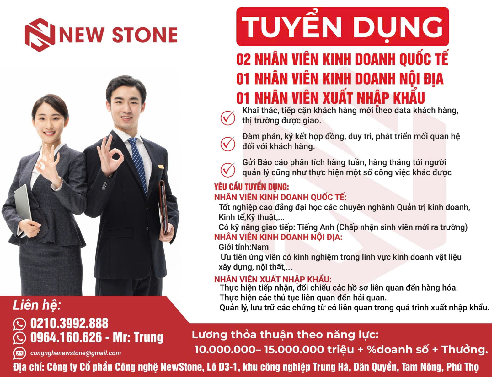 Công ty cổ phần công nghệ New Stone tuyển dụng lao động