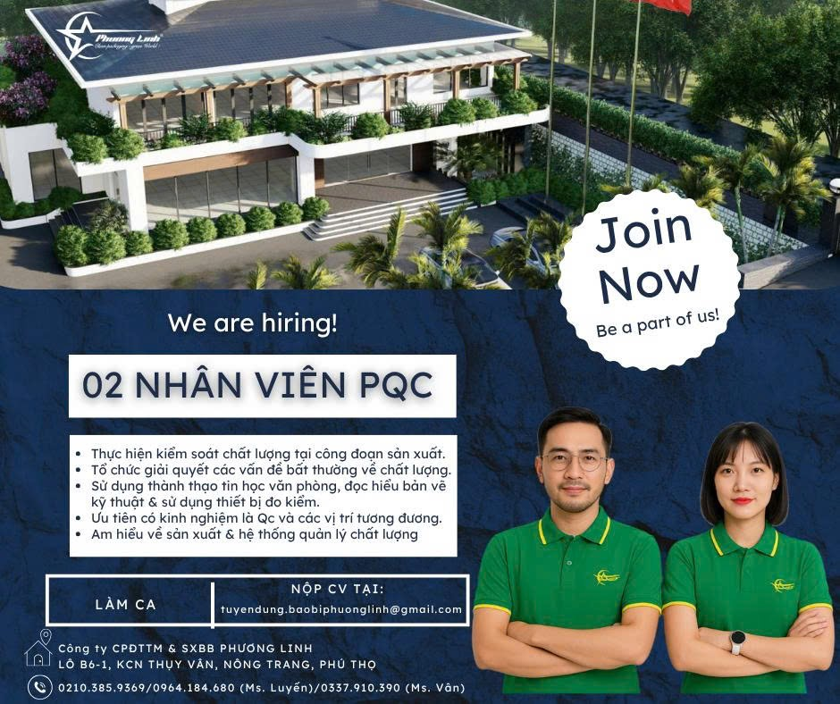 Công ty CPĐTTM & SXBB Phương Linh tuyển dụng