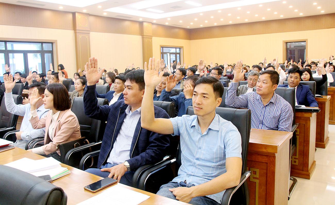 Các đại biểu biểu quyết thống nhất dự kiến về số lượng, cơ cấu, thành phần được giới thiệu ứng cử ĐBQH khóa XVI, đại biểu HĐND tỉnh khóa XX, nhiệm kỳ 2026 - 2031