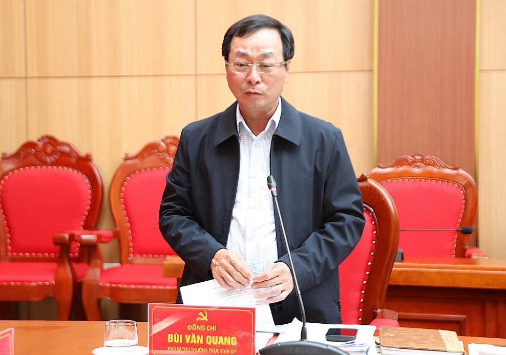 Phó Bí thư Thường trực Tỉnh ủy Bùi Văn Quang cho ý kiến vào các nội dung trình tại hội nghị