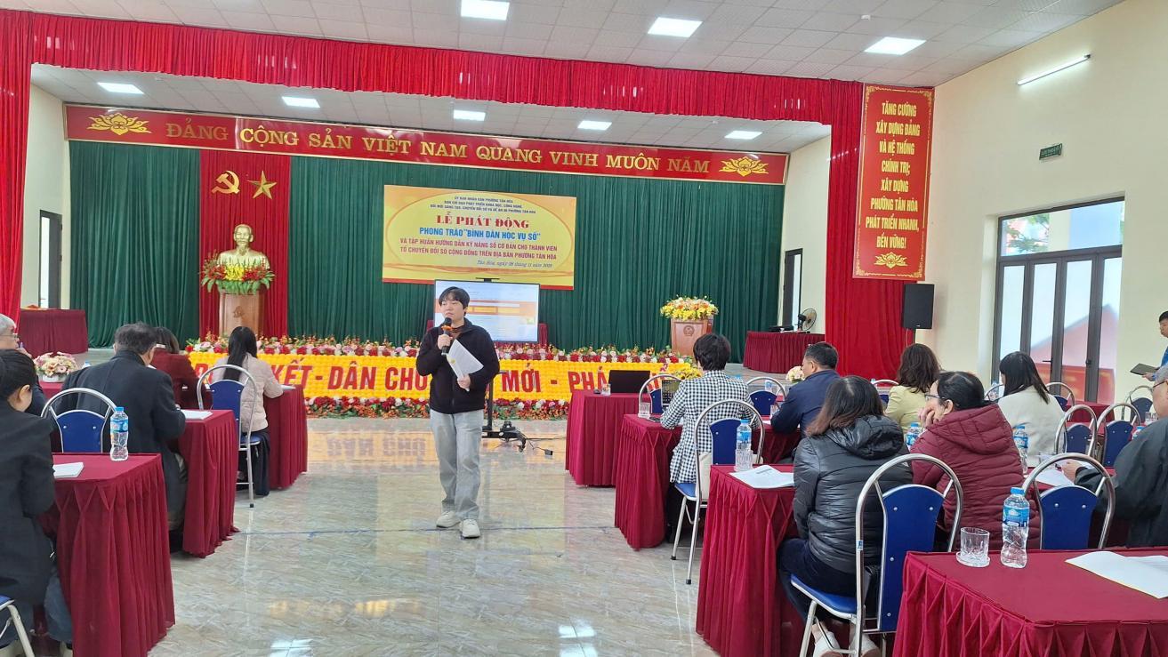 Lễ phát động phong trào “Bình dân học vụ số” và tập huấn nâng cao kỹ năng số cho thành viên Tổ chuyển đổi số cộng đồng trên địa bàn phường Tân Hòa