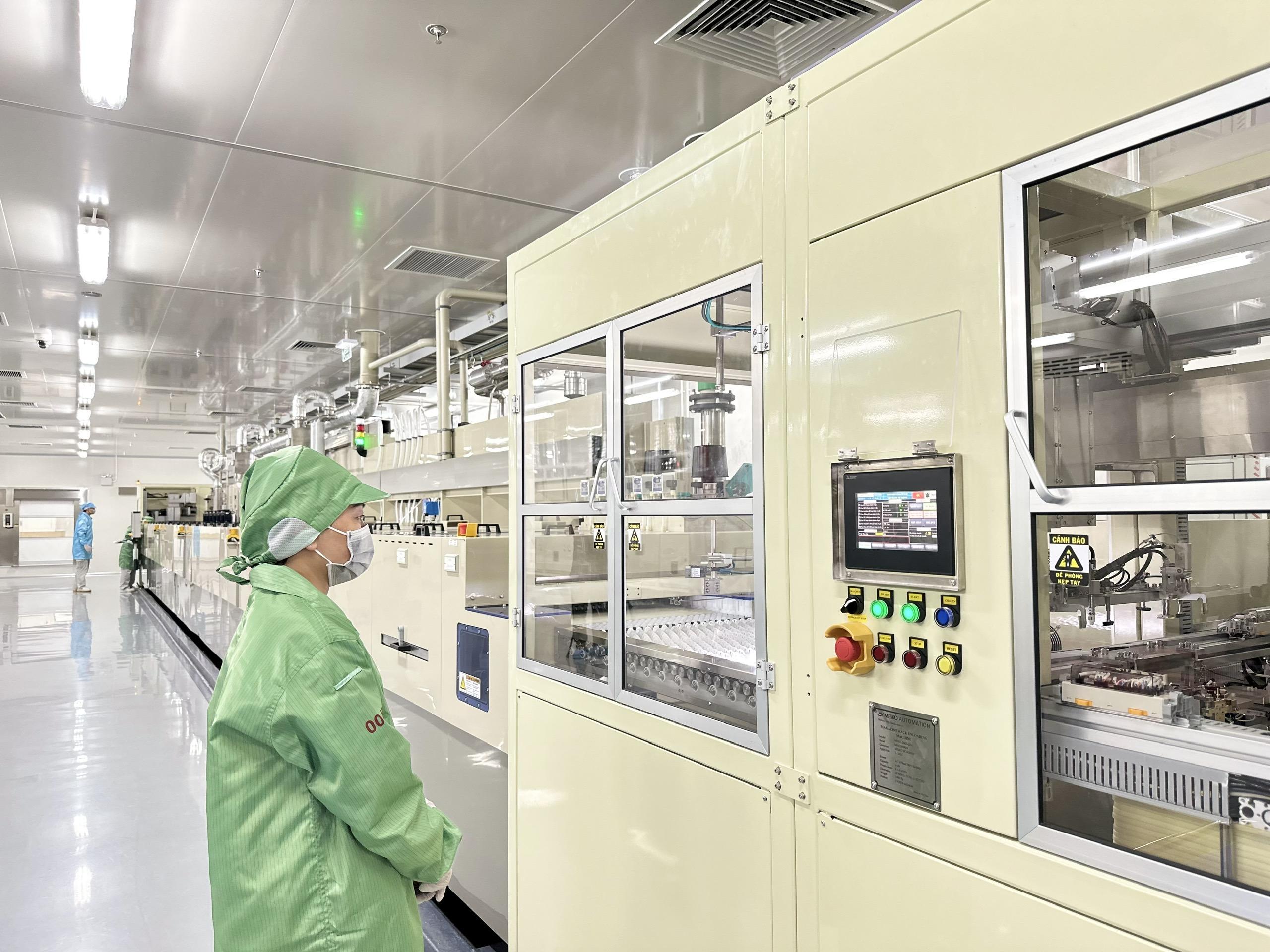 Công nhân làm việc trên dây chuyền sản xuất linh kiện điện tử công nghệ cao tại Công ty TNHH điện tử Meiko Electronics