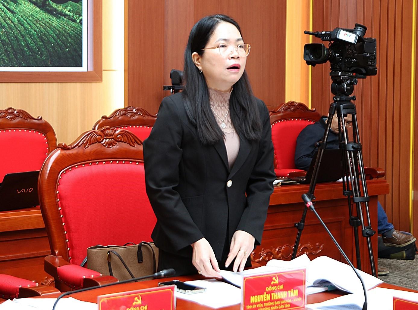 Trưởng Ban Văn hóa - Xã hội HĐND tỉnh Nguyễn Thanh Tâm góp ý đối với các dự thảo chính sách trình tại hội nghị