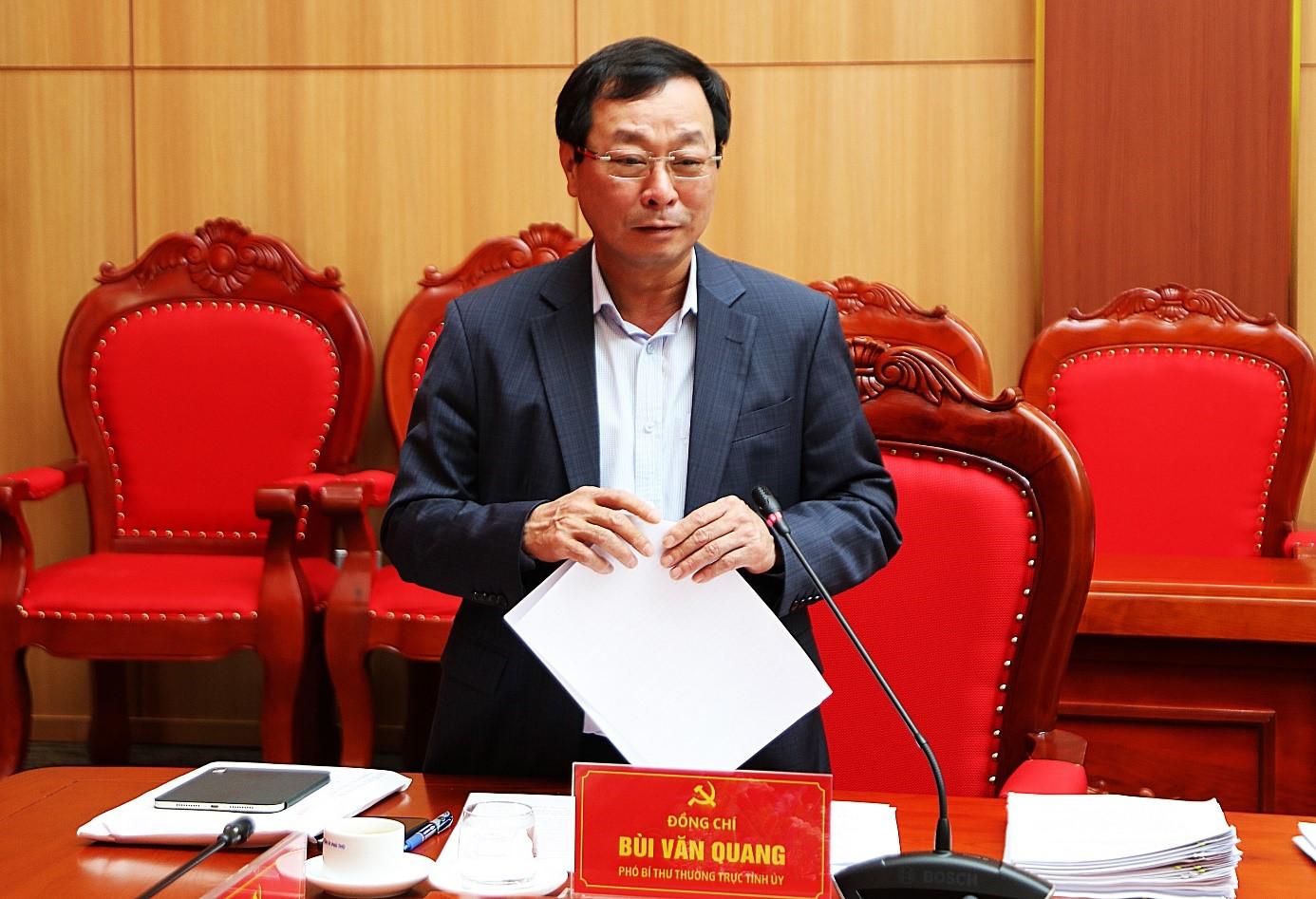 Phó Bí thư Thường trực Tỉnh ủy Bùi Văn Quang phát biểu tại hội nghị
