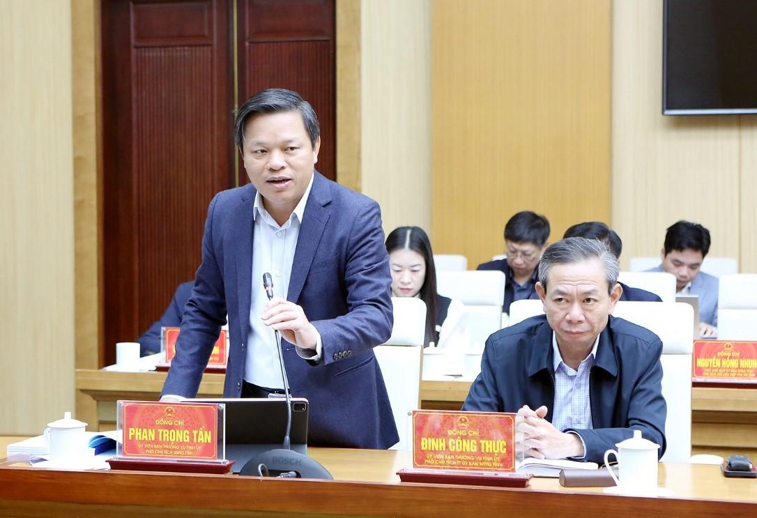 Trưởng Ban Tổ chức Tỉnh ủy Bùi Đình Thi phát biểu thảo luận tại hội nghị
