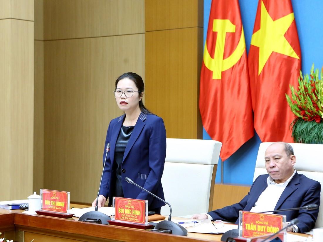 Phó Bí thư Tỉnh ủy, Phó Chủ tịch UBBC tỉnh Bùi Thị Minh phát biểu tại hội nghị